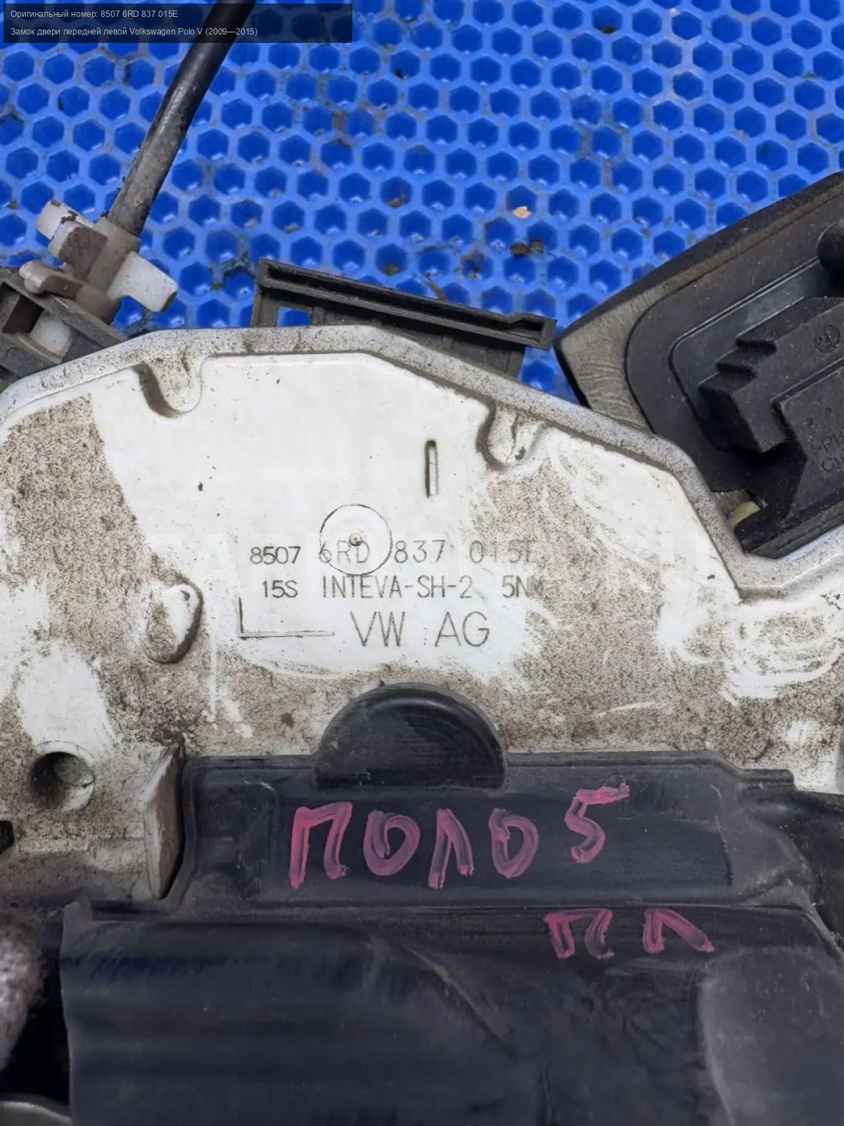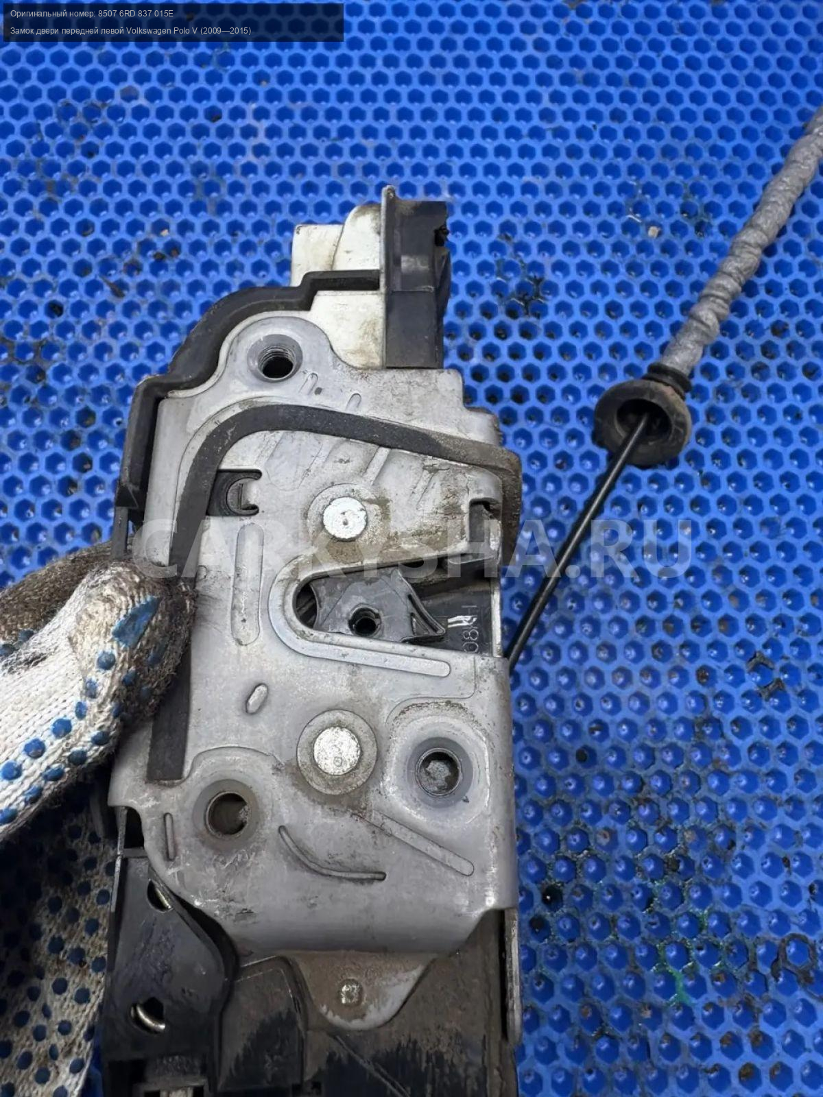 Volkswagen Polo V, замок двери передней левой\nАртикул: 10251\n\nОриг. номер: 8507 6RD 837 015E\nПроизводитель: VAG\nПримечание:Фольцваген Поло 5, замок двери передней левой, б/у. \n\nМарка: Volkswagen\nМодель: Polo V (2009—2015)\nГод выпуска: 2013\nКузов тип: Седан\nДвигатель номер: CFNA\nМодель двигателя: инжектор\nОбъем: 1.6\nТопливо: Бензин\nКоробка: Механика\nЦвет: Белый ( 0Q0Q)\nПраво/Лево: Лево\nПеред/Зад: Перед\nСовместимости: Volkswagen Polo V (2009—2015) 1.6 MPI MT (105 л.с.)\nСовместимость: