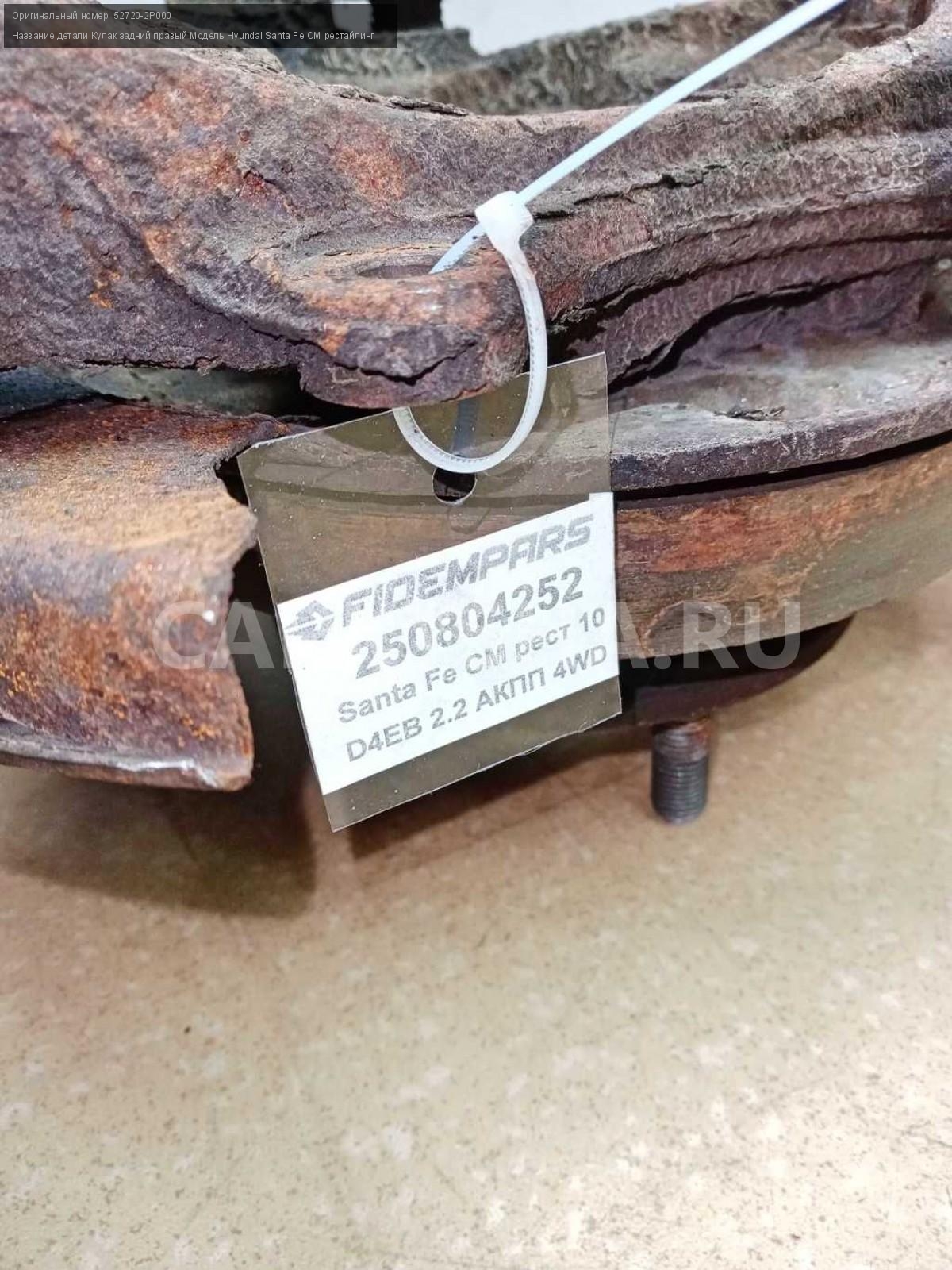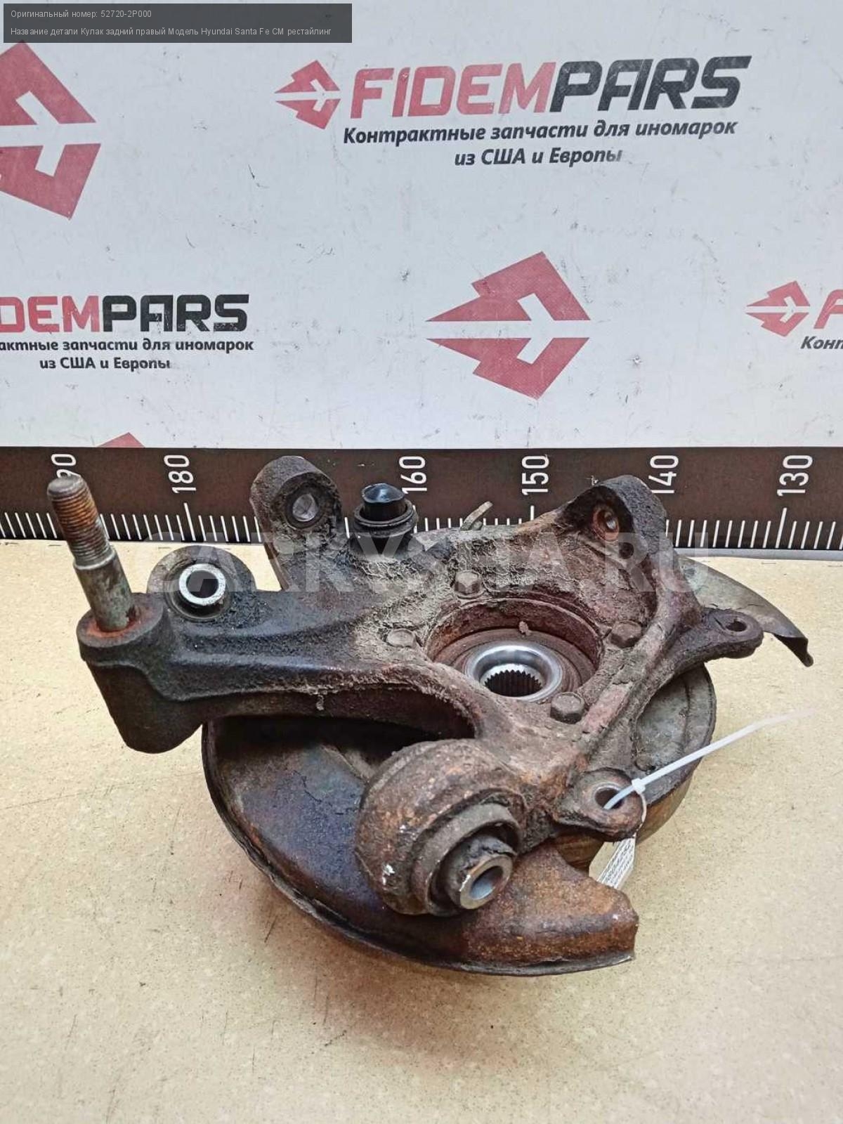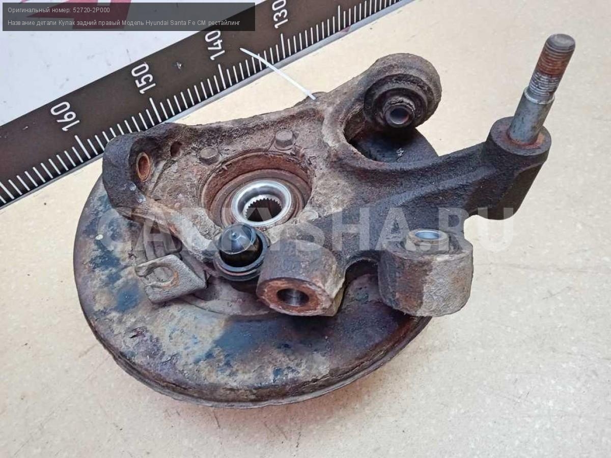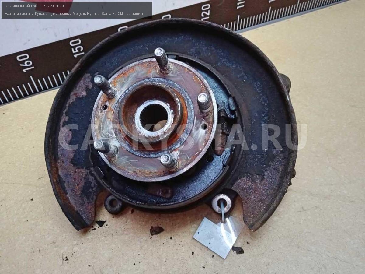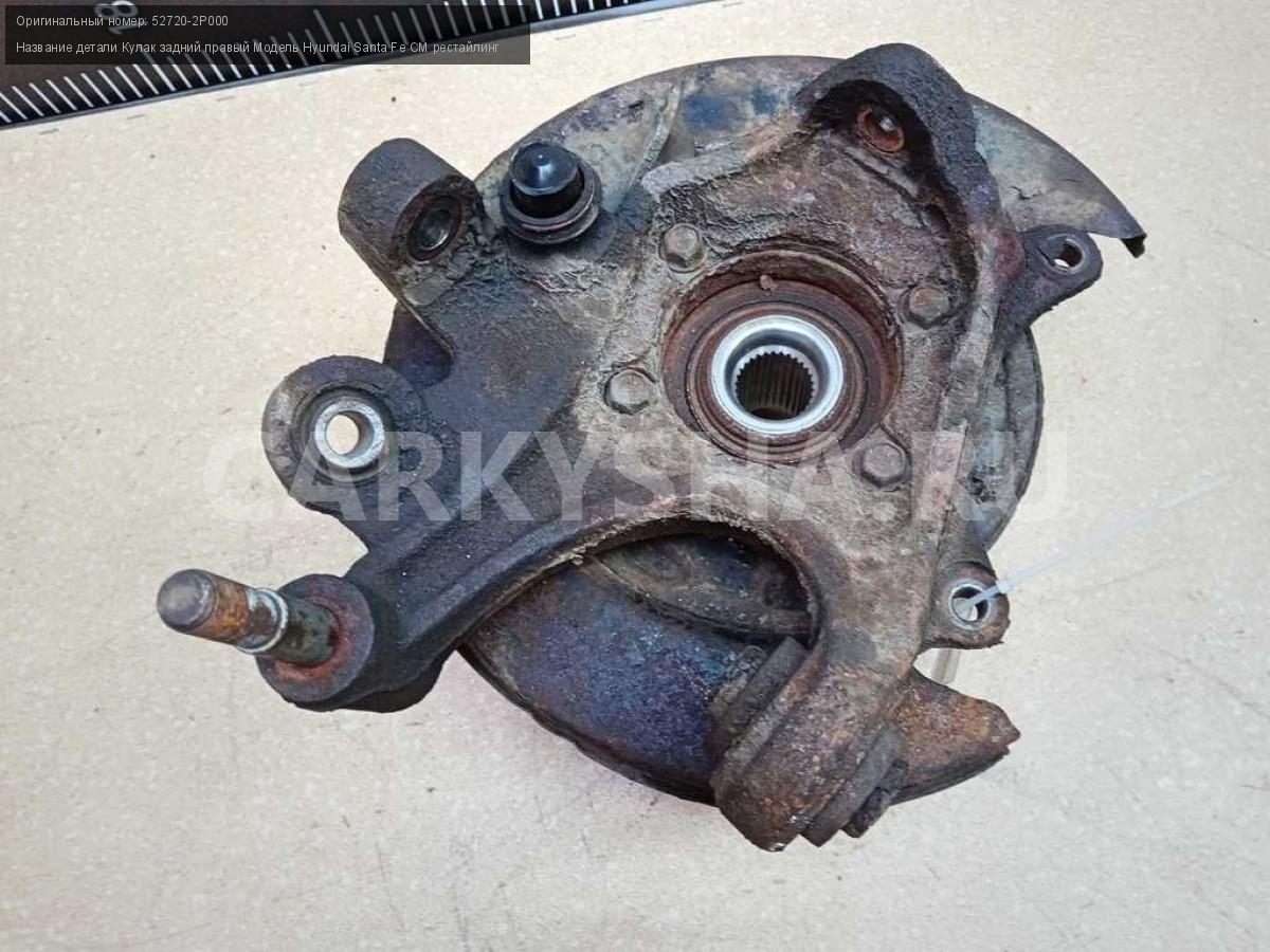 Название детали Кулак задний правый на Модель Hyundai Santa Fe CM рестайлинг Цапфа. В составе: 51750-2B010. Ступица. 52720-2P000 D4HB 2.2 дизель АКПП - 6 SPEED 4WD 4WD Номер по складу:250804252