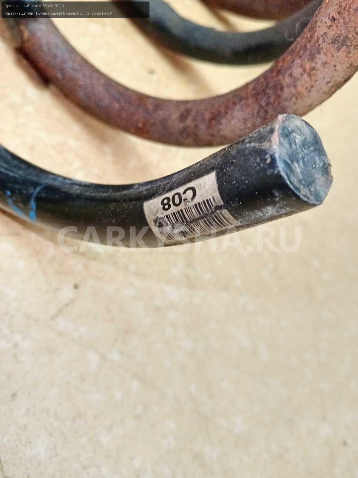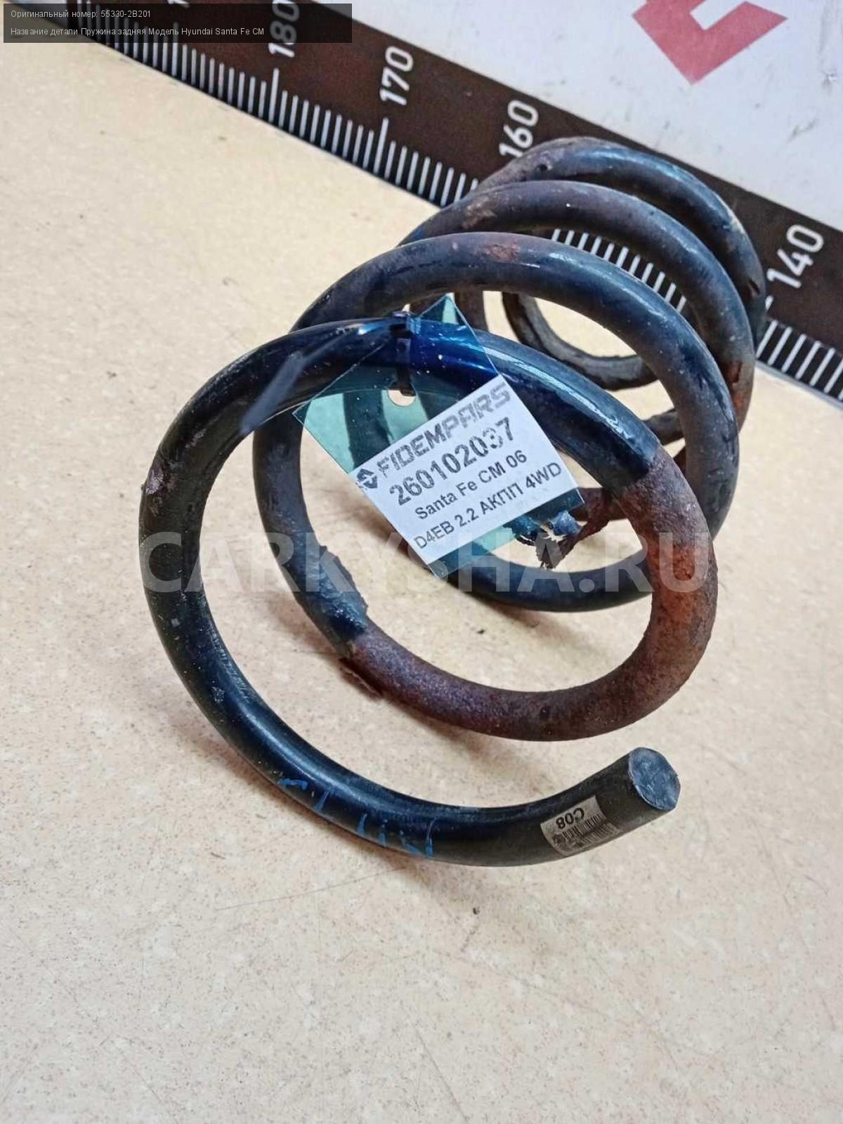 Название детали Пружина задняя на Модель Hyundai Santa Fe CM Правая и левая взаимозаменяемая. 55330-2B201 D4EB 2.2 дизель АКПП - 5 SPEED 4WD 4WD Номер по складу:260102037