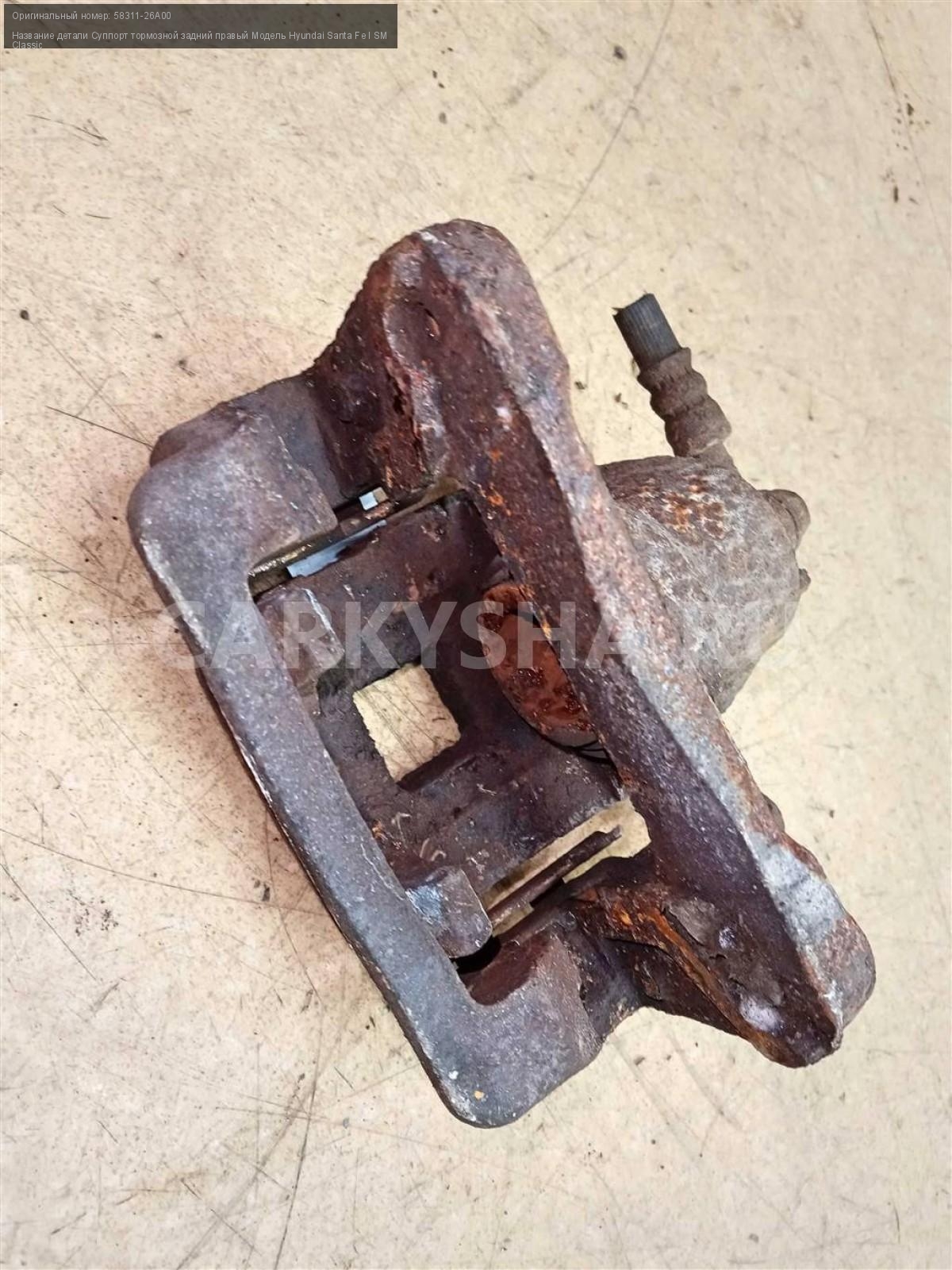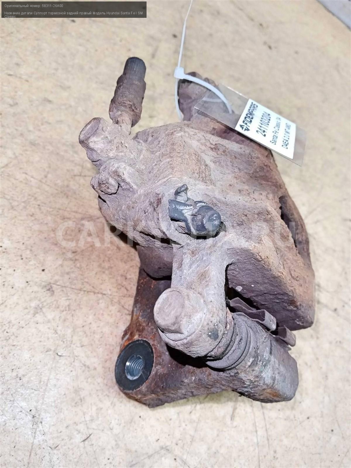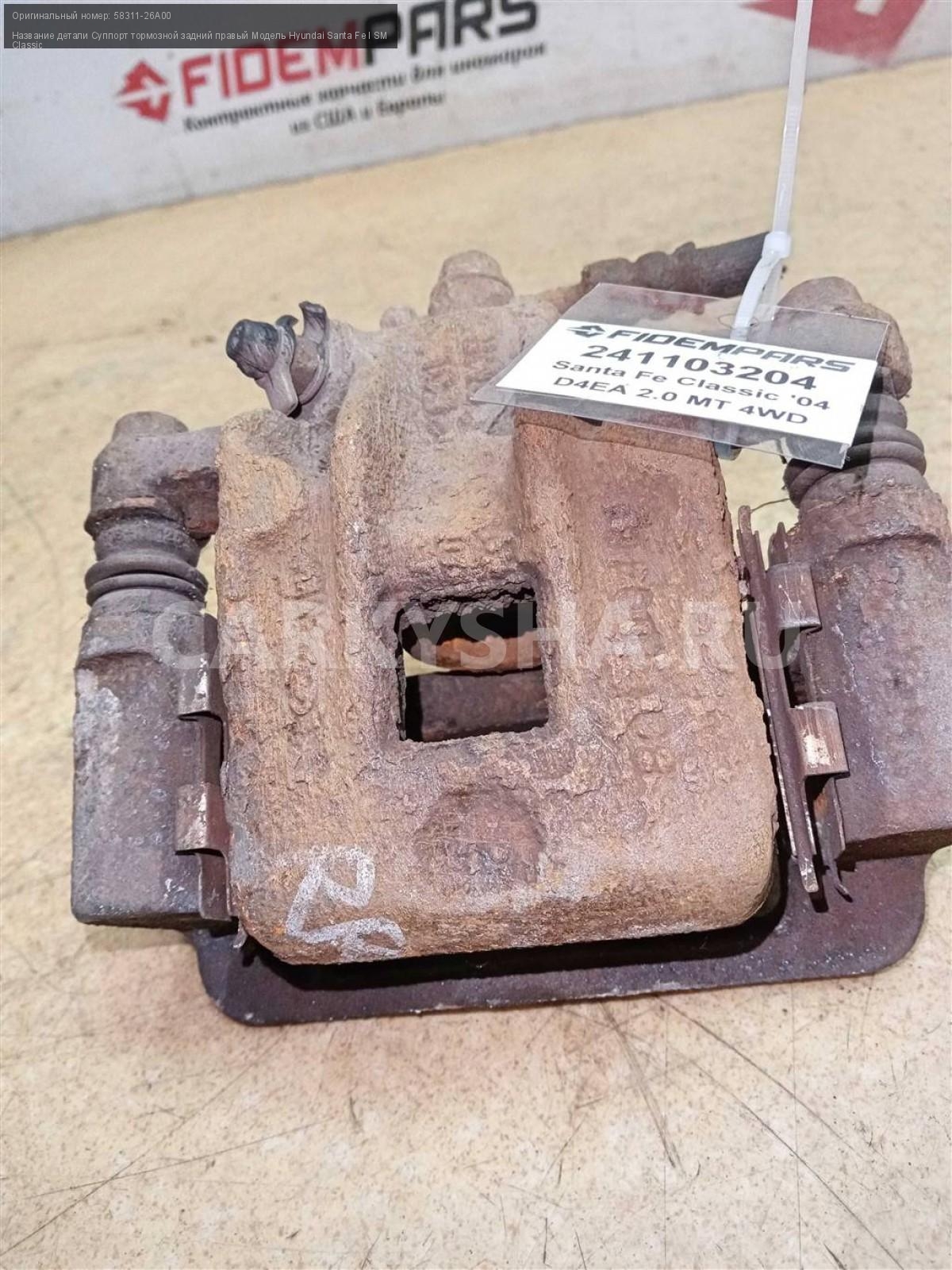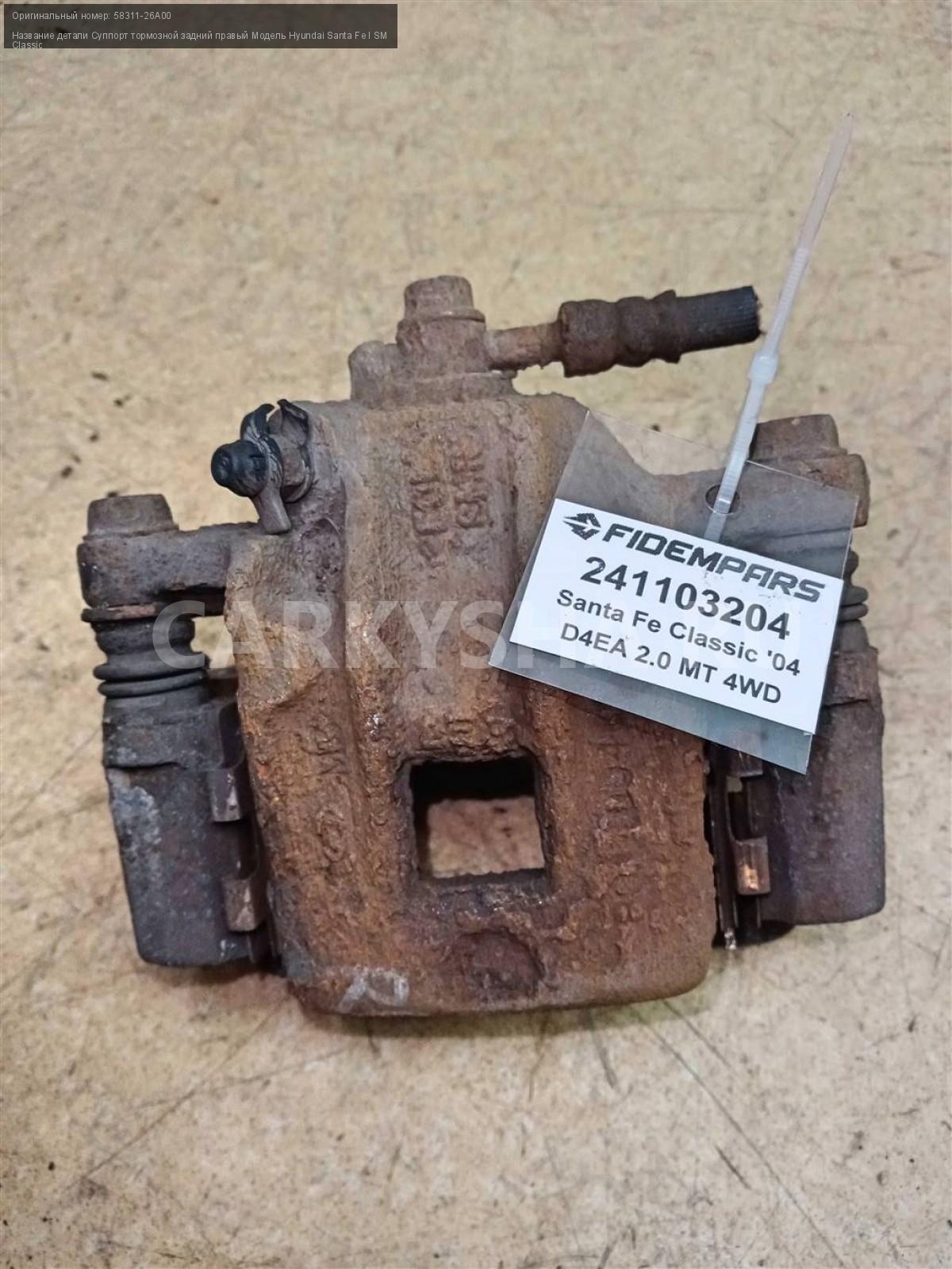 Название детали Суппорт тормозной задний правый на Модель Hyundai Santa Fe I SM Classic Тормозной. Поршень. Скоба 58311-26A00 D4EA 2.0 дизель МКПП 5 SPEED MT 4WD 4WD Номер по складу:241103204 Подходит также на: Hyundai Santa Fe I SM Classic