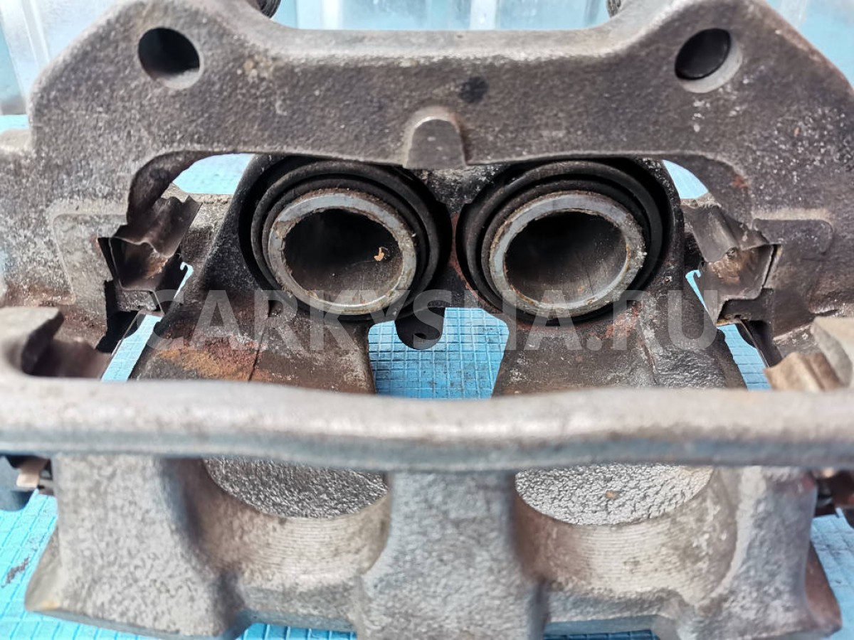 Суппорт тормозной в сборе со скобой. Резинки направляющих порвоны, можно перекинуть с вашего, пыльники поршней в норме. В остальном, в отличном состоянии