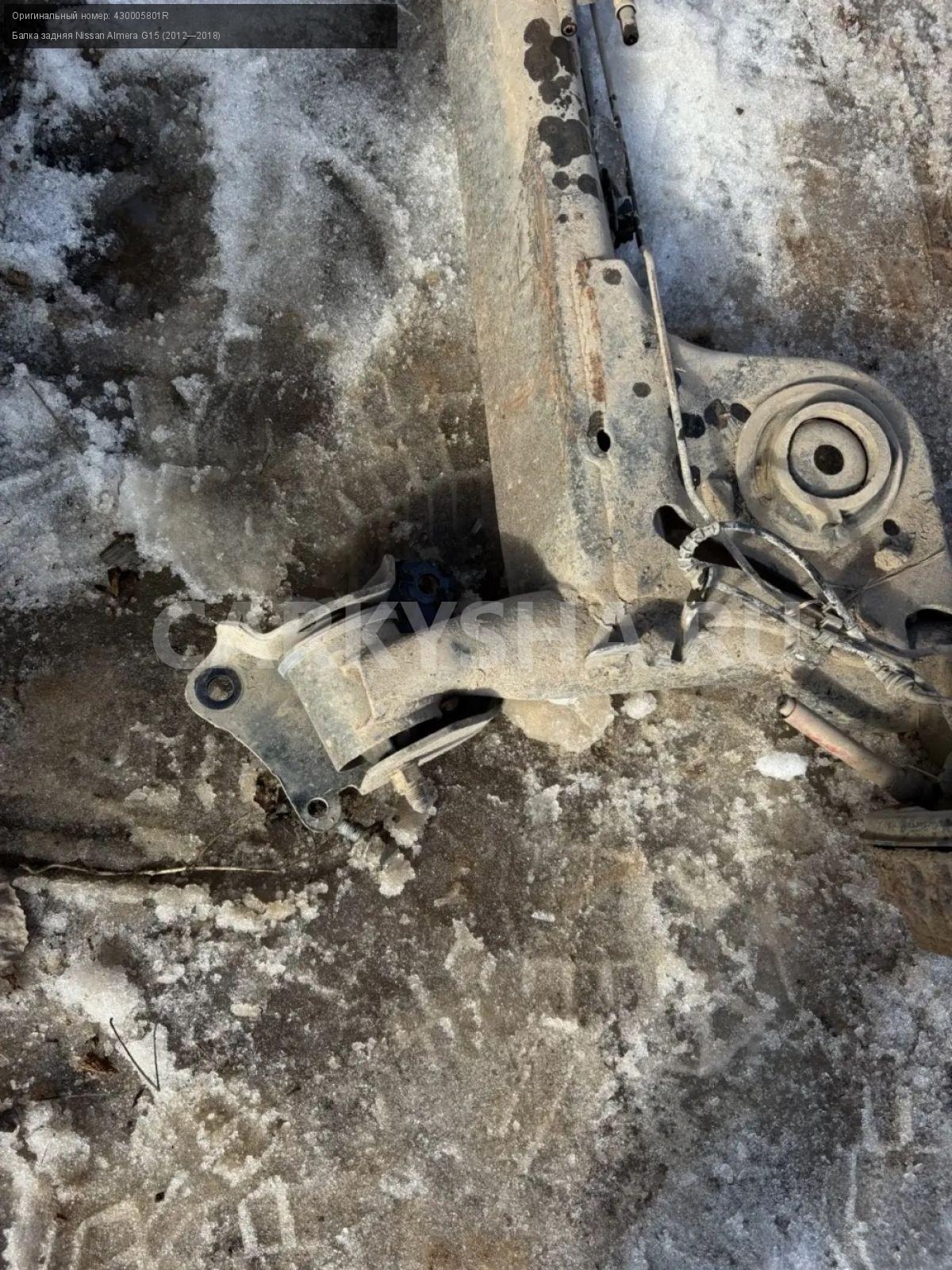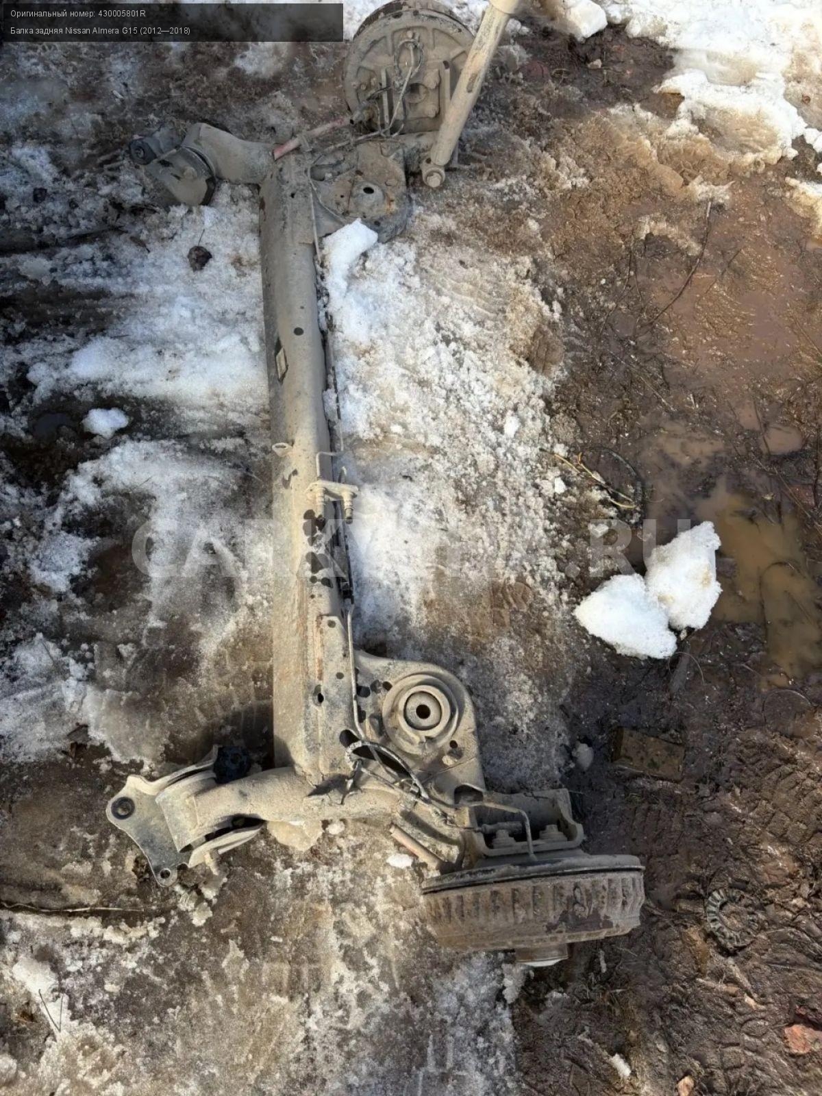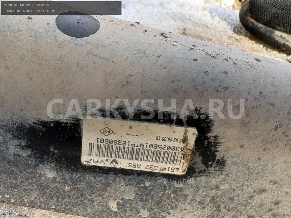 Nissan Almera G15, балка задняя с барабанами\nАртикул: 10117\n\nОриг. номер: 430005801R\nПроизводитель: NISSAN\nПримечание:Ниссан Альмера G15 , задняя балка в сборе с барабанами, б/у. \n\nМарка: Nissan\nМодель: Almera G15 (2012—2018)\nГод выпуска: 2015\nКузов тип: Седан\nДвигатель номер: K4MA490черный\nМодель двигателя: инжектор\nОбъем: 1.6\nТопливо: Бензин\nКоробка: Механика\nЦвет: Черный\nПеред/Зад: Зад\nСовместимости: Nissan Almera G15 (2012—2018) 1.6 MT (102 л.с.)\nСовместимость: