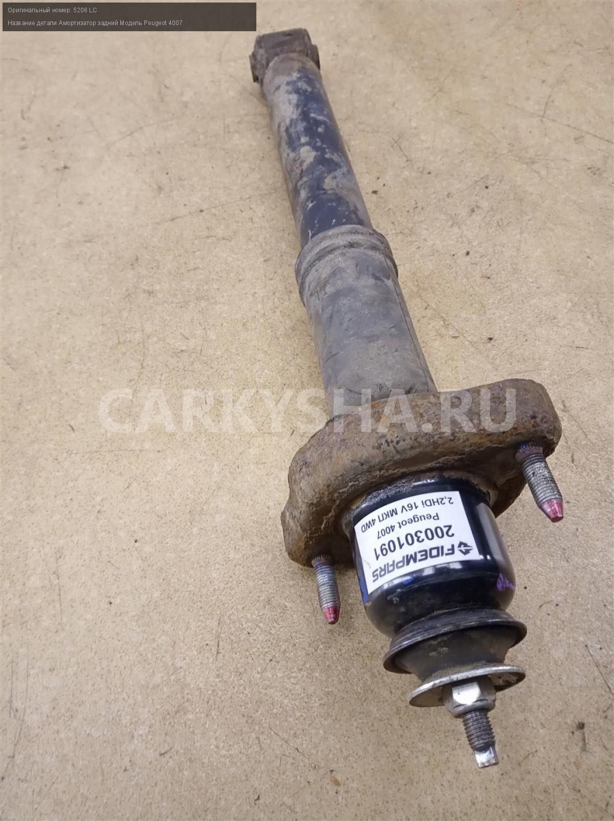 Название детали Амортизатор задний на Модель Peugeot 4007 В составе: опора - 5142 46, пыльник - 5166 98 . Стойка. 5206 LC 2.2 HDi 16V 4HN МКПП 6-ступ. полный Номер по складу:200301091