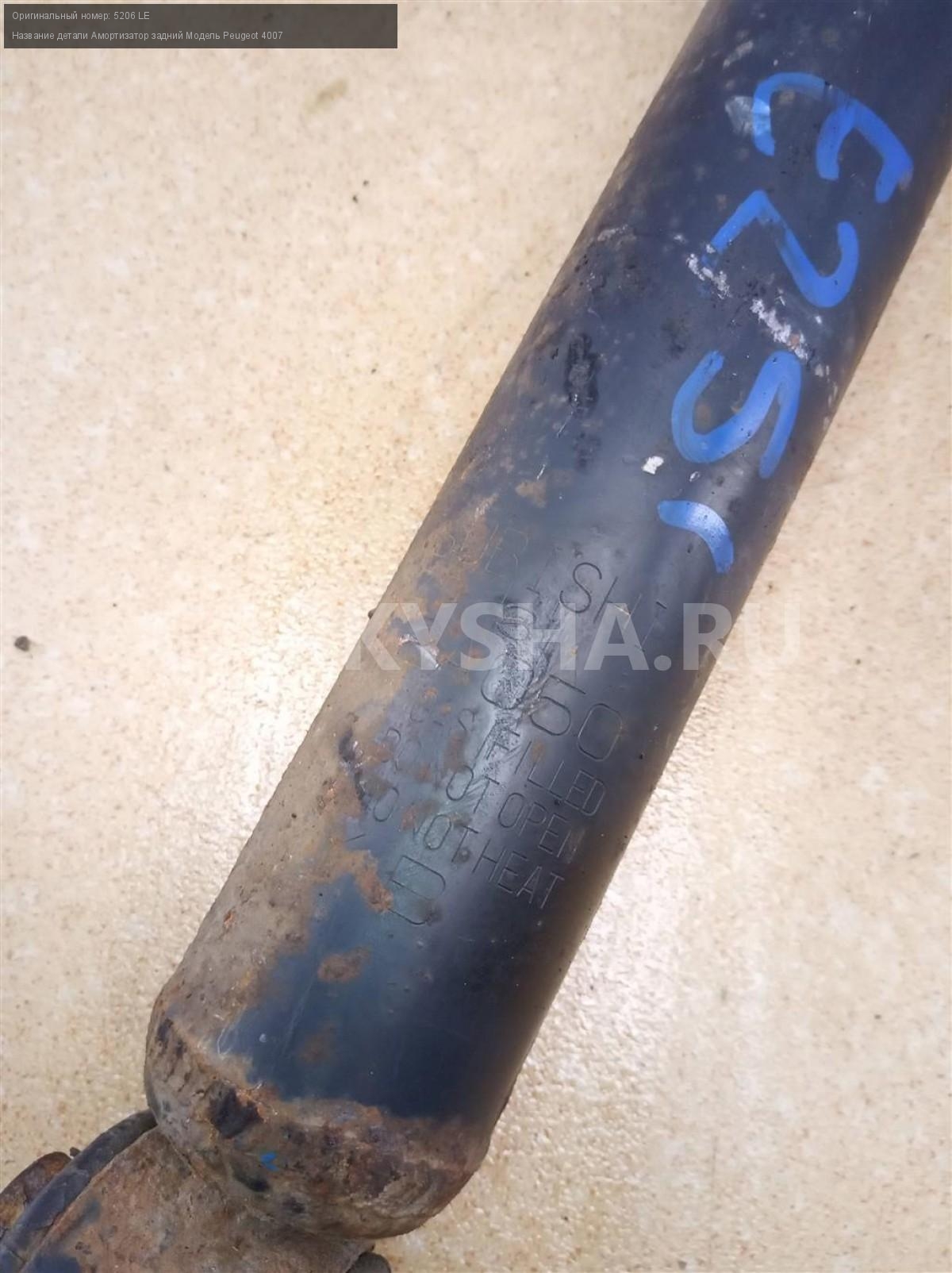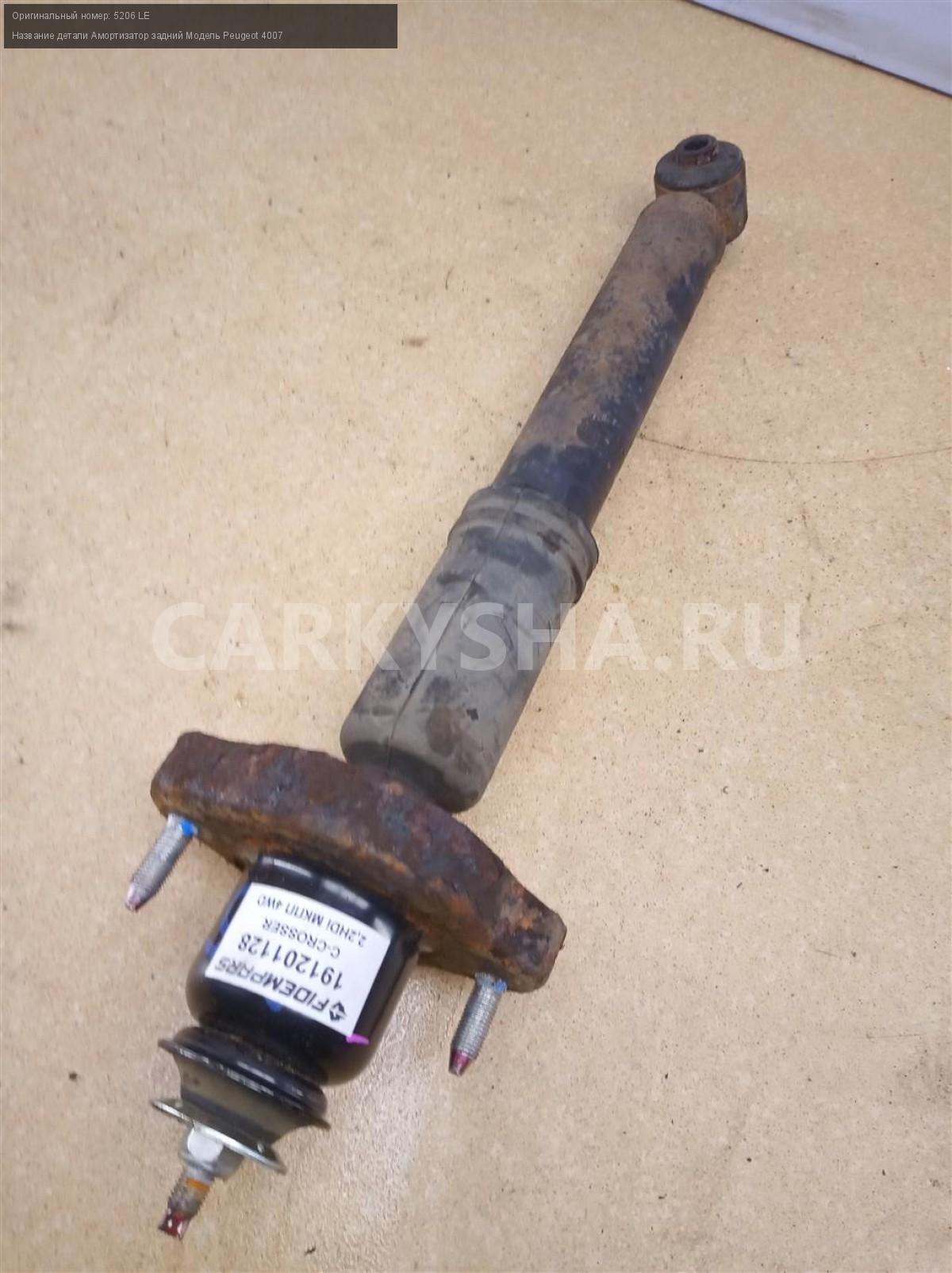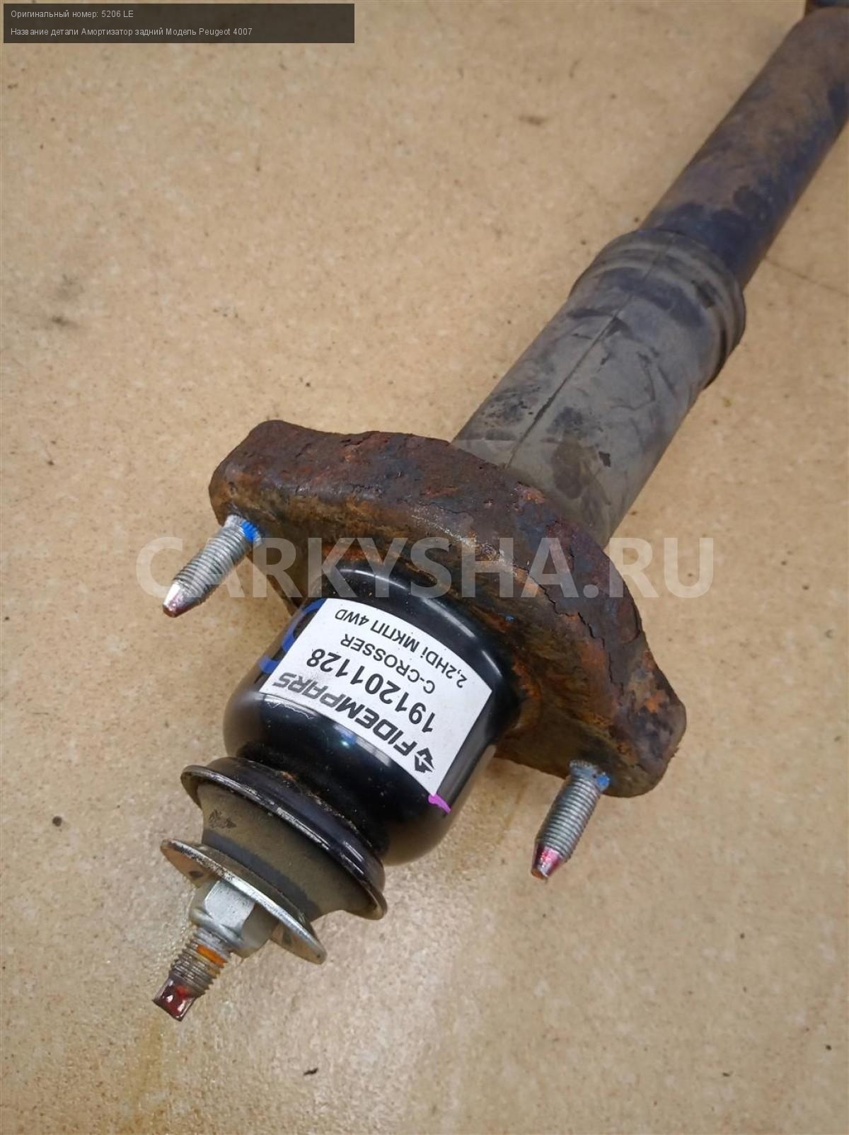 Название детали Амортизатор задний на Модель Peugeot 4007 В составе: пыльник - 5166 98, опора - 5142 46. 5206 LE 2.2 HDi 16 4HN МКПП 6-ступ. 4WD Номер по складу:191201128 Подходит также на: Mitsubishi Outlander XL,Peugeot 4007