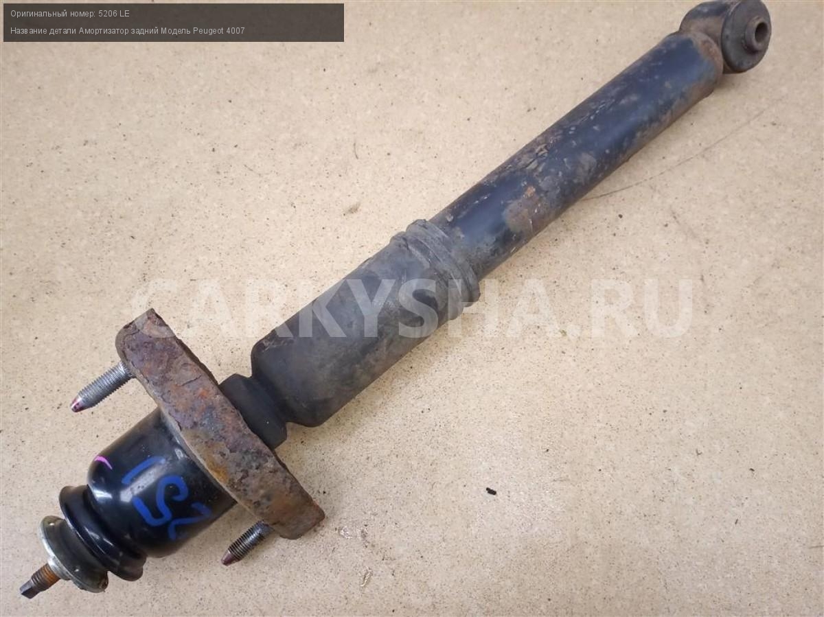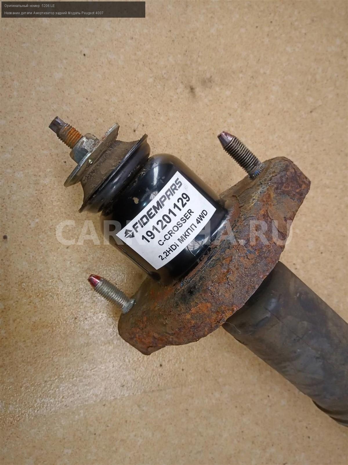 Название детали Амортизатор задний на Модель Peugeot 4007 В составе: пыльник - 5166 98, опора - 5142 46. 5206 LE 2.2 HDi 16 4HN МКПП 6-ступ. 4WD Номер по складу:191201129 Подходит также на: Mitsubishi Outlander XL,Peugeot 4007,Mitsubishi Outlander XL,Peugeot 4007
