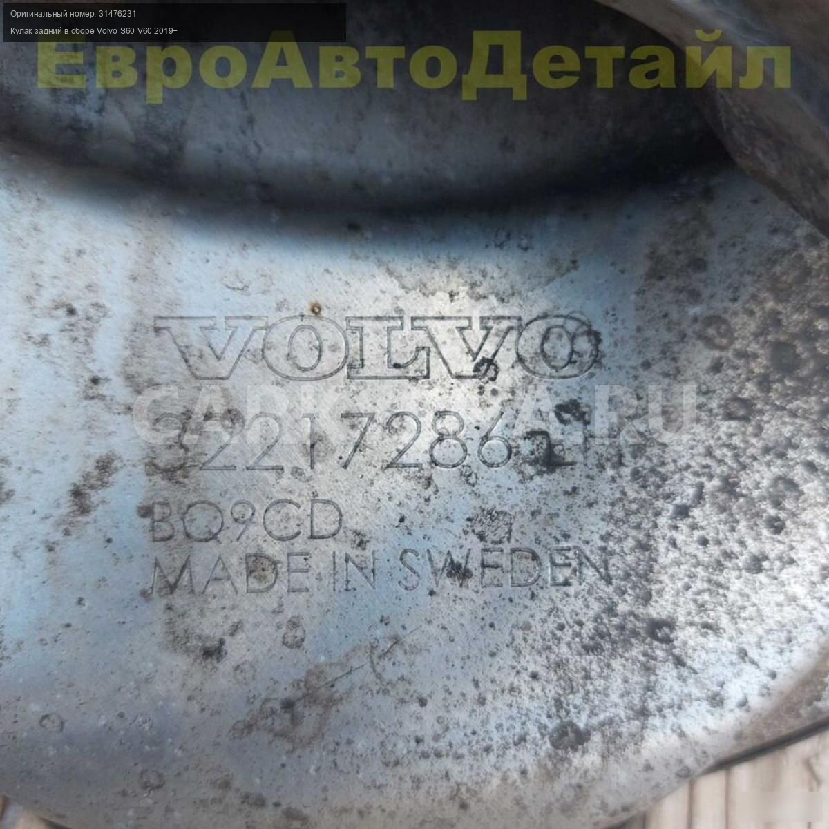 Поворотный кулак задний левый с ступицей в сборе Volvo S60 2,0i T5 AWD (B4204T26) выпуск 08.2019г. (б/у оригинал).