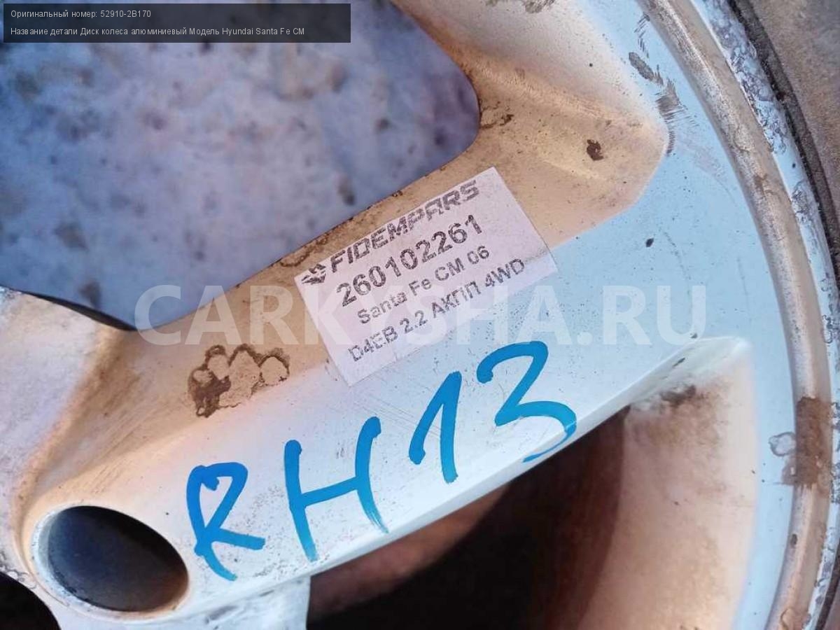 Название детали Диск колеса алюминиевый на Модель Hyundai Santa Fe CM Запаска. 225/55R17. 7.0 X 17 ET41.0 PCD 5x114.30 DIA 67.10 52910-2B170 D4EB 2.2 дизель АКПП - 5 SPEED 4WD 4WD Номер по складу:260102261