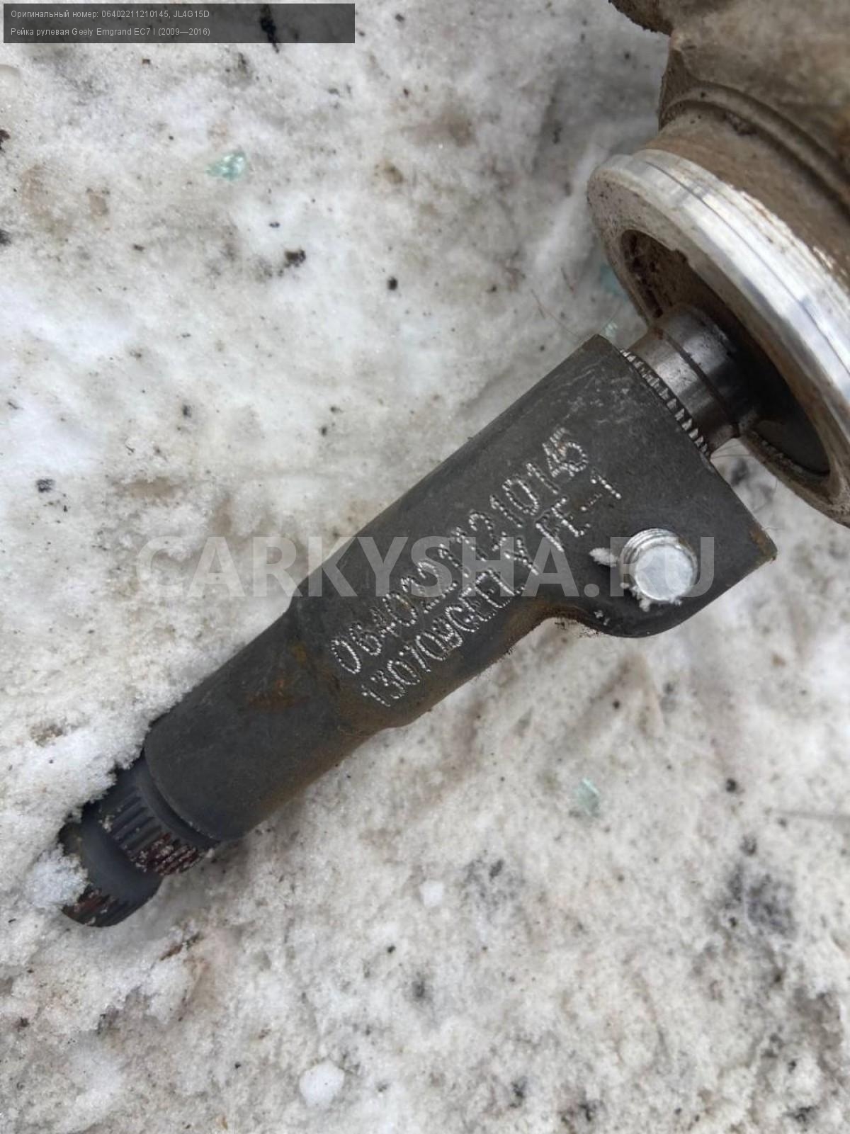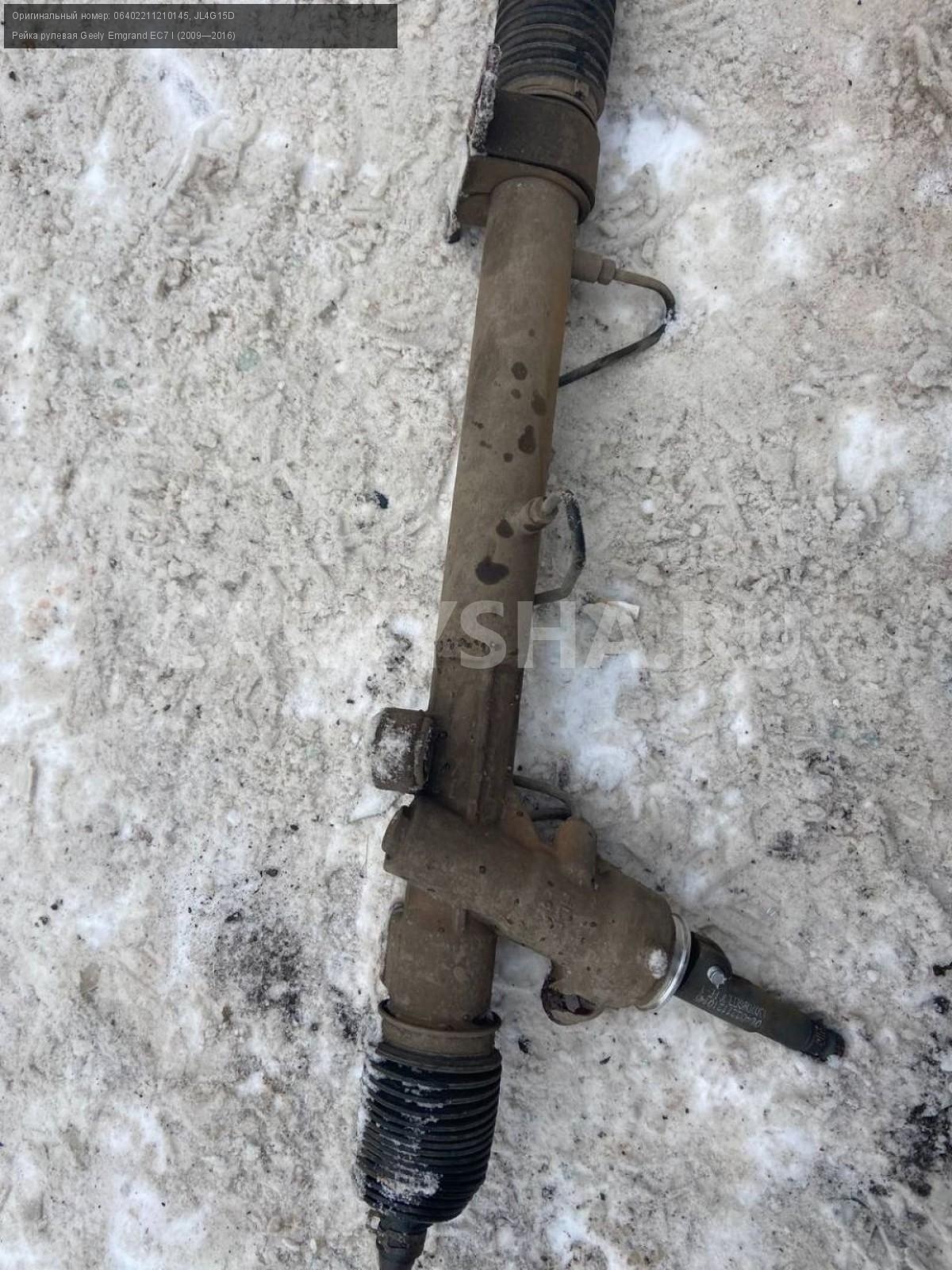 Geely Emgrand EC7, рулевая рейка.\nАртикул: 6988\n\nОриг. номер: 06402211210145\nНомера замен: JL4G15D\nПроизводитель: GEELY\nПримечание:Джили Эмгранд ЕС7, рулевая рейка, б/у, левый наконечник под замену. \n\nМарка: Geely\nМодель: Emgrand EC7 I (2009—2016)\nГод выпуска: 2013\nКузов тип: Седан\nДвигатель номер: JL4G15D\nМодель двигателя: инжектор\nОбъем: 1.5\nТопливо: Бензин\nКоробка: Механика\nЦвет: Черный\nСовместимости: Geely Emgrand EC7 I (2009—2016) 1.5 MT (98 л.с.)\nСовместимость: