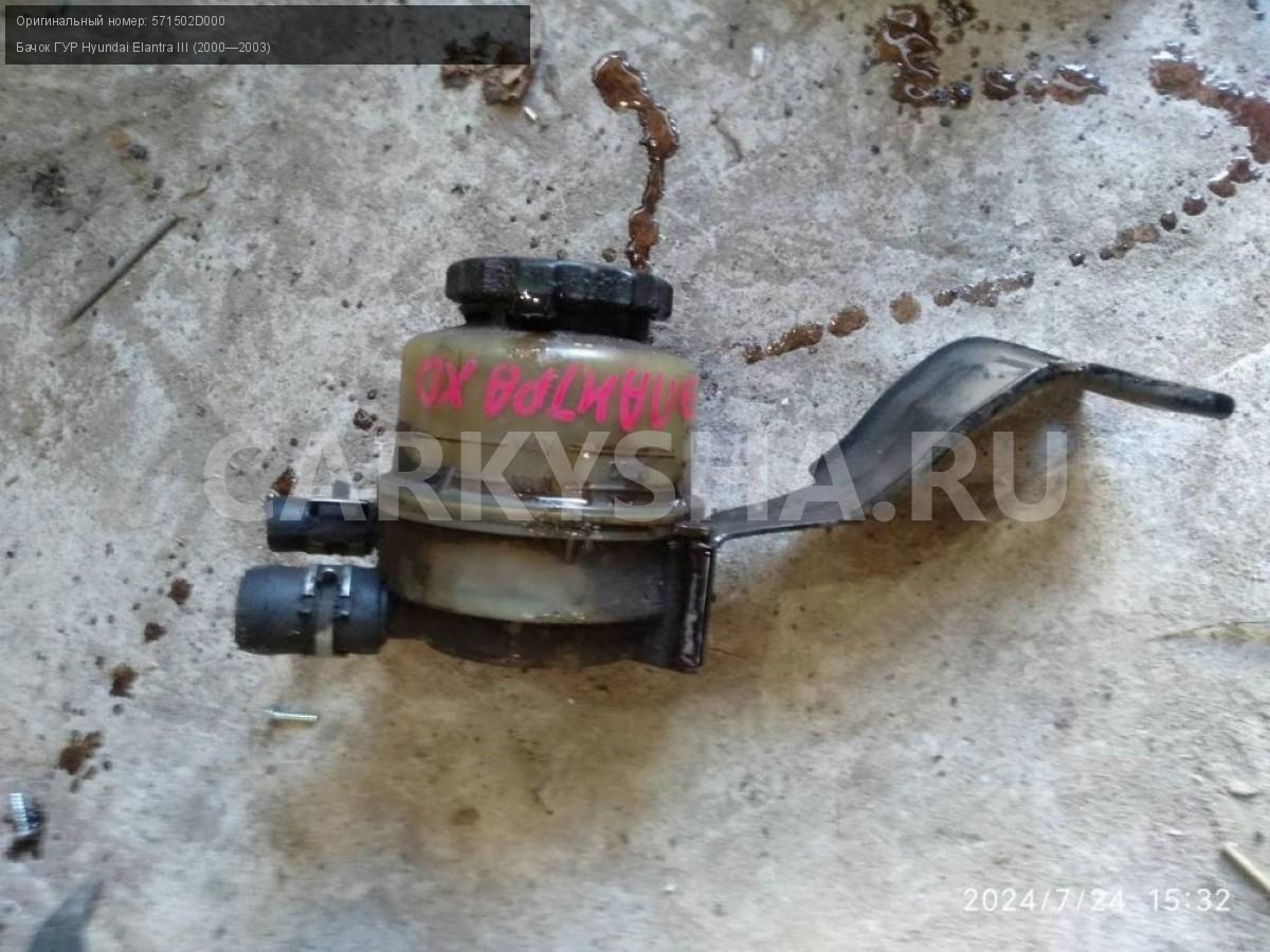 Hyundai Elantra III, бачок ГУРа.\nАртикул: 5299\n\nОриг. номер: 571502D000\nПроизводитель: Hyundai-KIA\nПримечание:Хендай Элантра 3, бачок ГУРа, б/у. \n\nМарка: Hyundai\nМодель: Elantra III (2000—2003)\nГод выпуска: 2003\nКузов тип: Седан\nДвигатель номер: G4GC\nМодель двигателя: инжектор\nОбъем: 2.0\nТопливо: Бензин\nКоробка: Автомат\nЦвет: Серебро\nСовместимости: Hyundai Elantra III (2000—2003) 2.0 AT (139 л.с.)\nСовместимость: