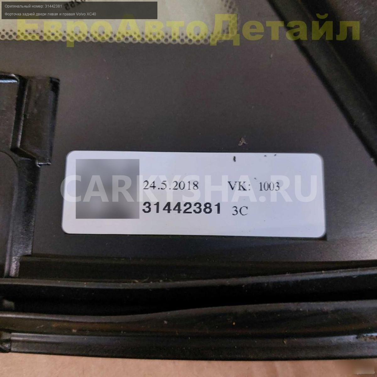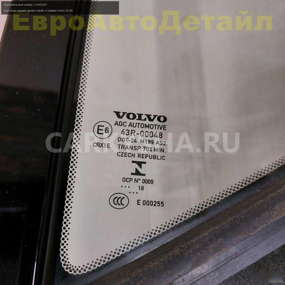 Боковое неподвижное стекло задней двери левое и правое Volvo XC40 2,0i T4 AWD (B4204Т47) дорестайлинг 06.2018г., пробег 38000км (б/у oригинал).