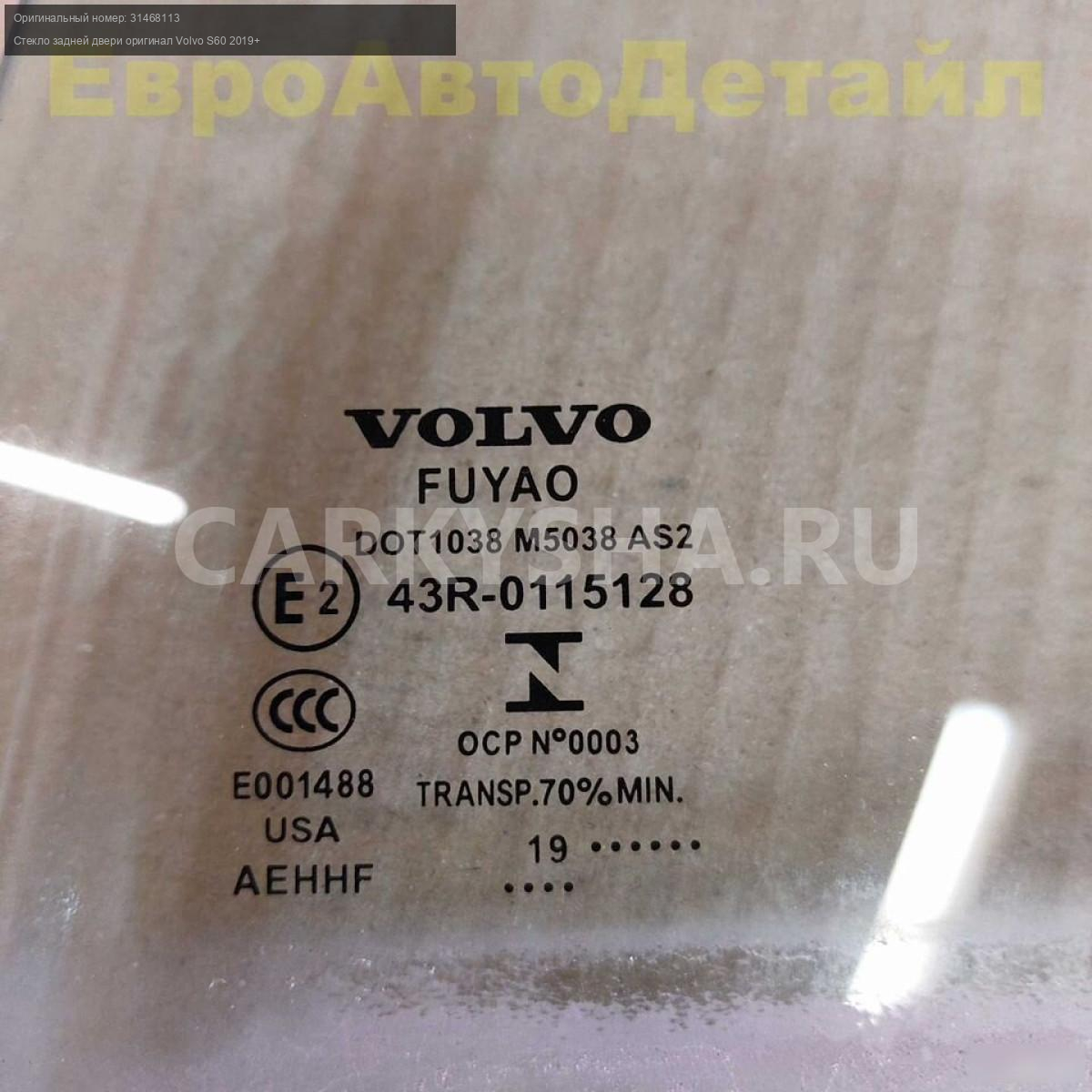 Стекло задней двери левое и правое Volvo S60 2,0i T5 AWD (B4204T26) выпуск 08.2019г. (б/у оригинал).