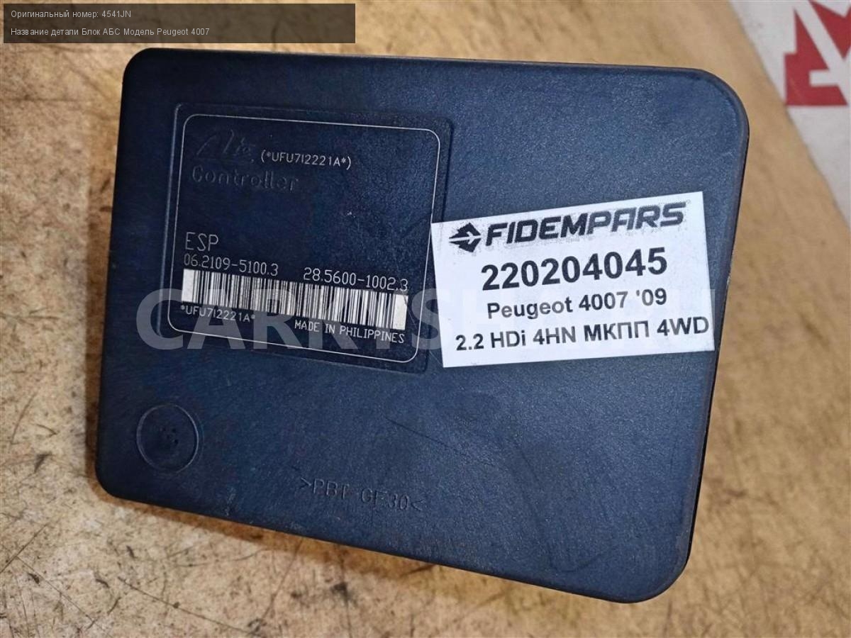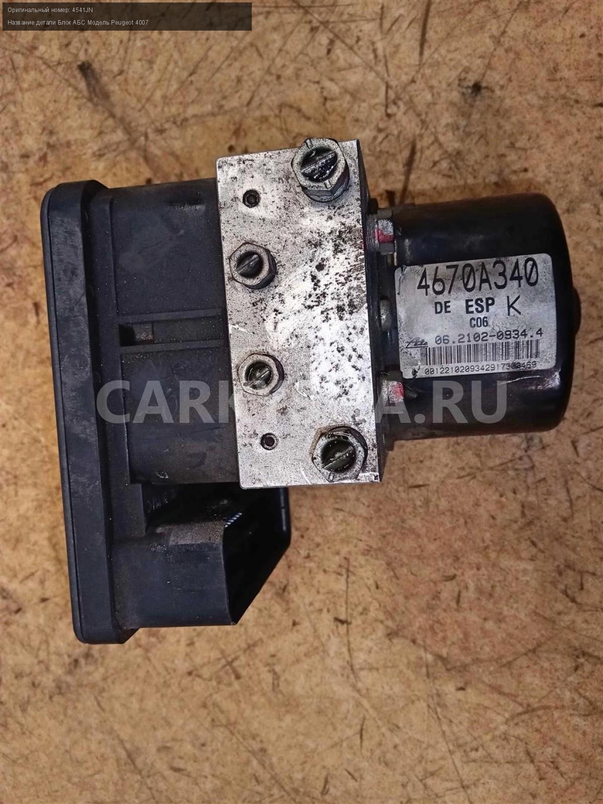 Название детали Блок АБС на Модель Peugeot 4007 Номера на блоке: 4670A340 . Насос ABS. Гидроблок. 4541JN 2.2 HDi 16 4HN МКПП 4WD Номер по складу:220204045 Подходит также на: Mitsubishi Outlander XL,Citroen C-Crosser,Peugeot 4007