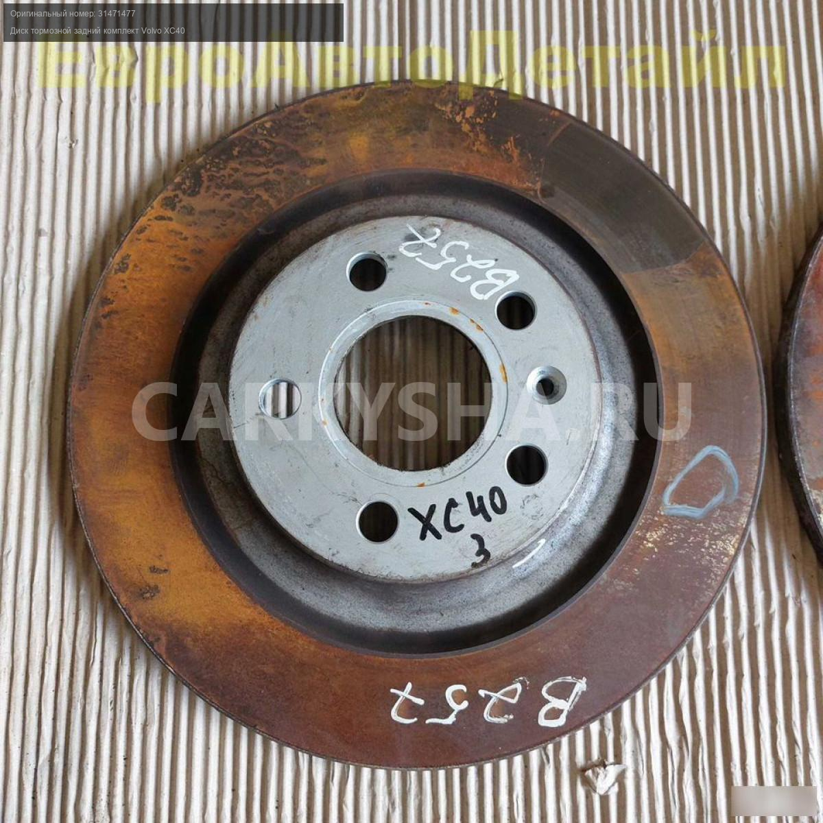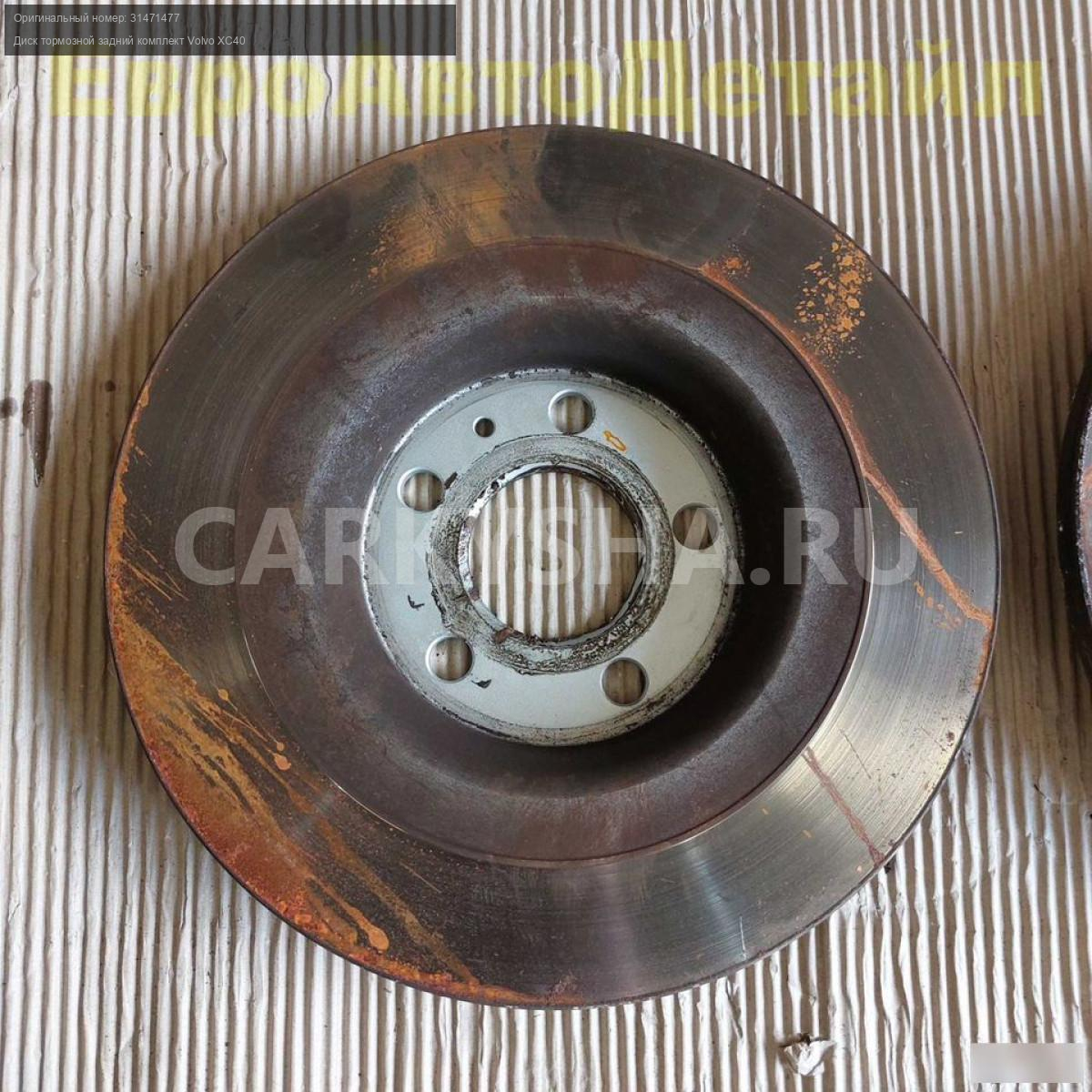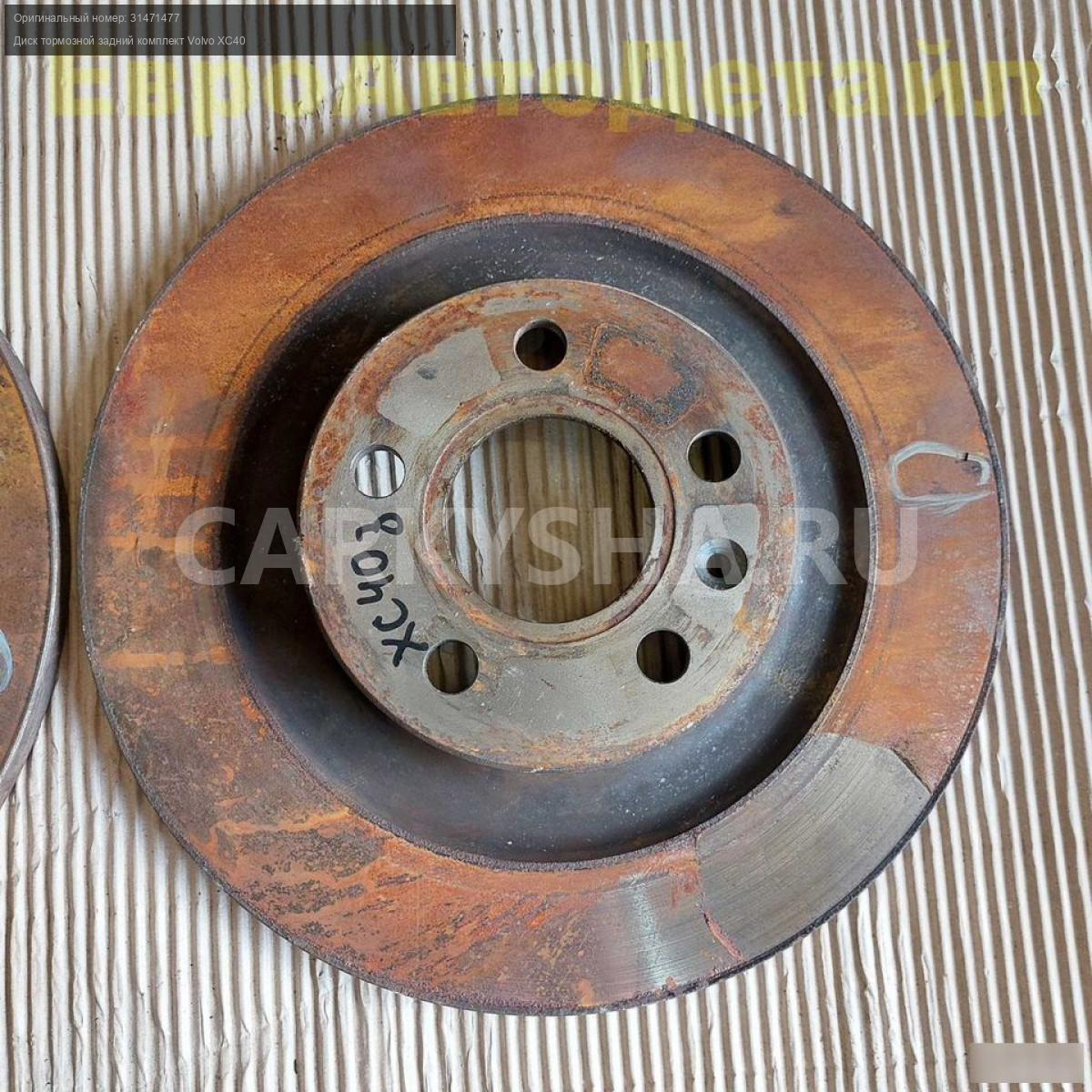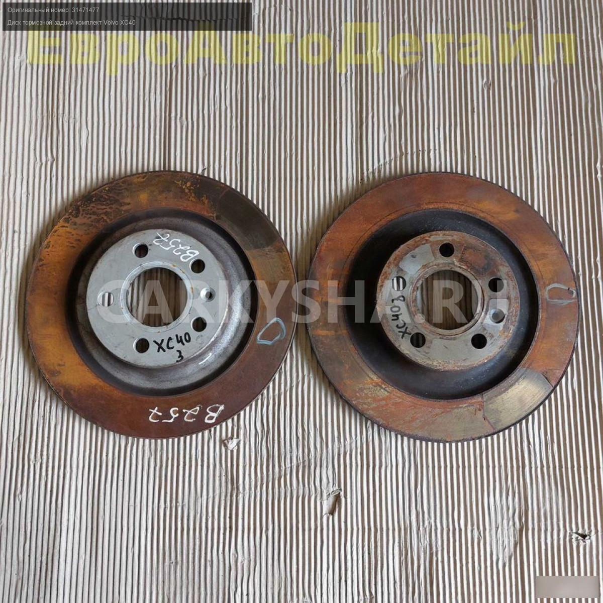 Диски тормозные задние комплект Volvo XC40 2,0i T4 AWD (B4204Т47) дорестайлинг 06.2018г., пробег 38000км (б/у oригинал).